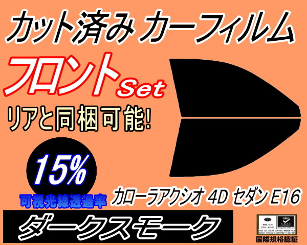 フロント (s) カローラ アクシオ 4ドア セダン E16 (15%) カット済みカーフィルム 運転席 助手席 三角窓 左右セット スモークフィルム フロントドア 車種別 スモーク 車種専用 成形 フイルム 日よけ 窓 ガラス ウインドウ NZE161 164 NRE160 165 NKE165 ハイブリッド トヨタ
