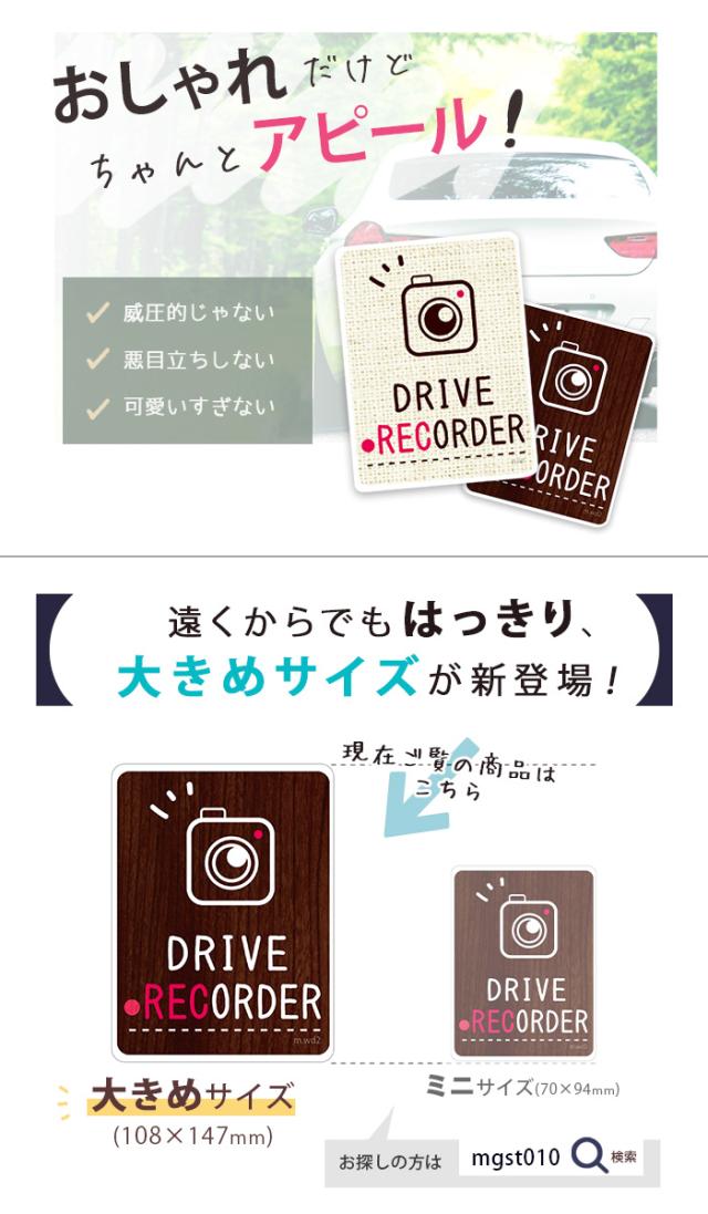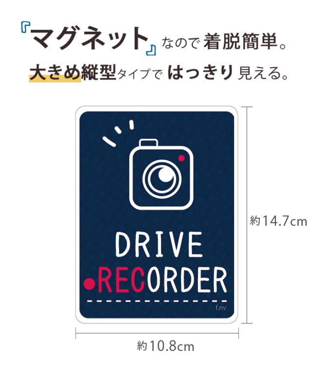 ドラレコ ステッカー デザイン かわいい マグネット おしゃれ ドライブレコーダー 磁石 約108×147ミリ 大きめ 防犯 あおり対策