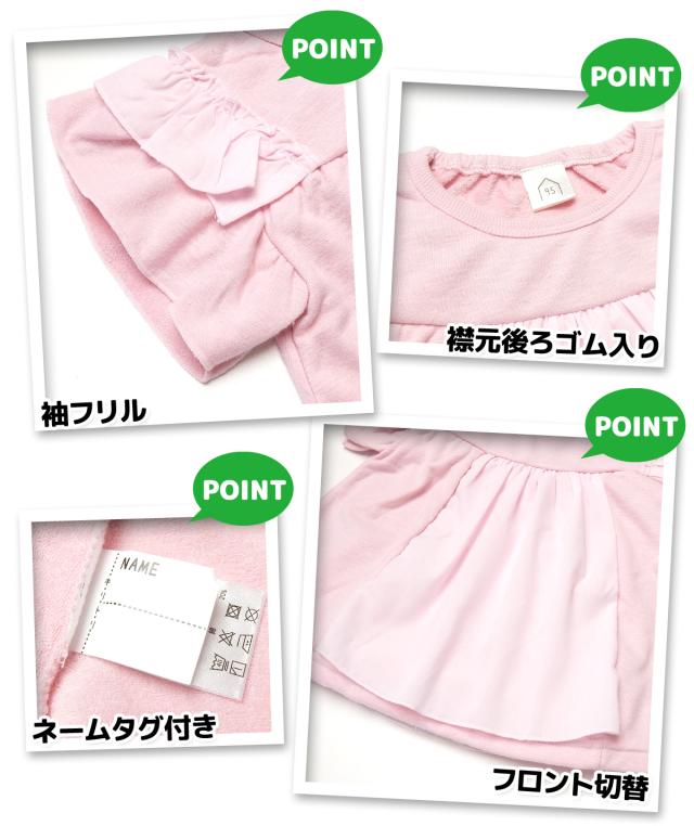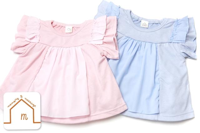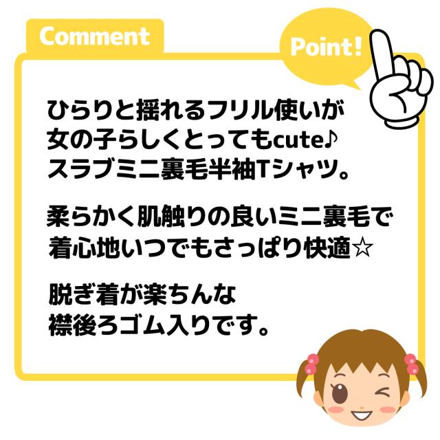 【送料無料】女児 ベビー スラブミニ裏毛 半袖 Tシャツ フリル フロント切替 襟後ろゴム入り ベビー服 女の子 80cm 90cm 95cm jt-0099【メール便対応】