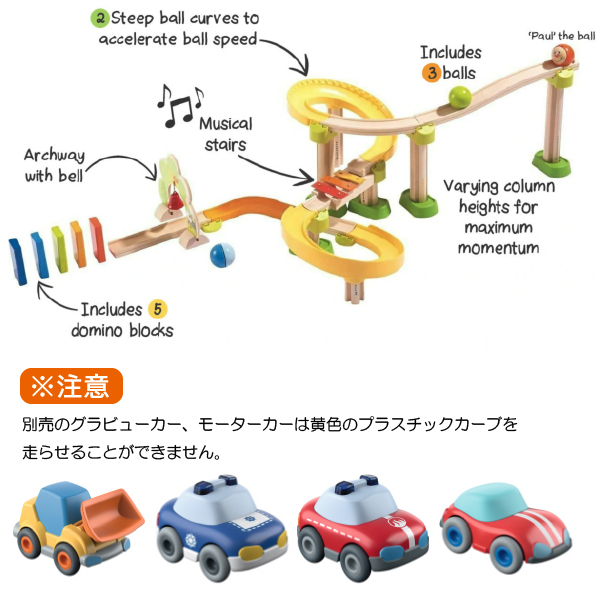 HABA ハバのグラビューカーシリーズは、木製のレールとプラスチックのレールを組み合わせることで、より大きな可能性を生み出しました。