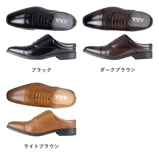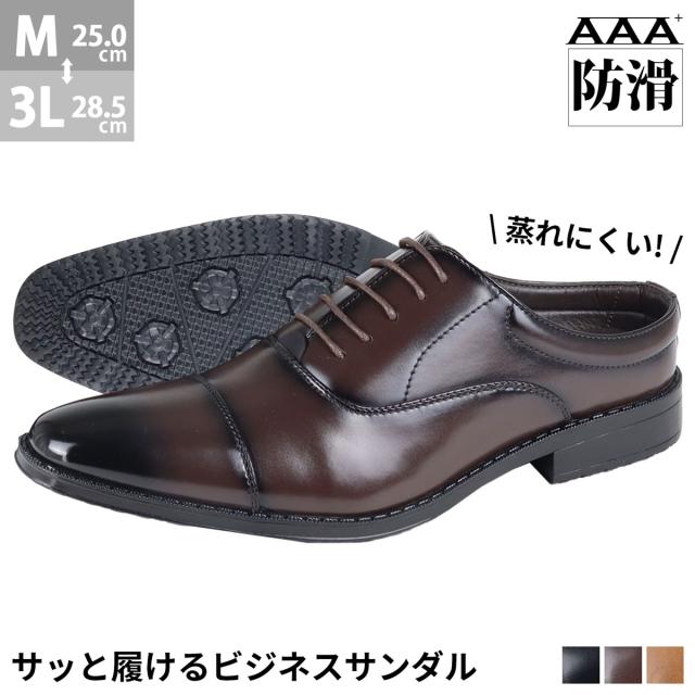 サッと履ける ビジネスシューズ メンズ サンダル 革靴 ビジネスサンダル 蒸れにくい 通気性 かかとなし 内羽根 No.2690 25.0-28.5cm ストレートチップ ロングノーズ 3cmヒール 黒 ブラック AAA+ サンエープラス 合成皮革 スリッパ 紳士靴 269 滑りにくい 防滑 通勤 仕事