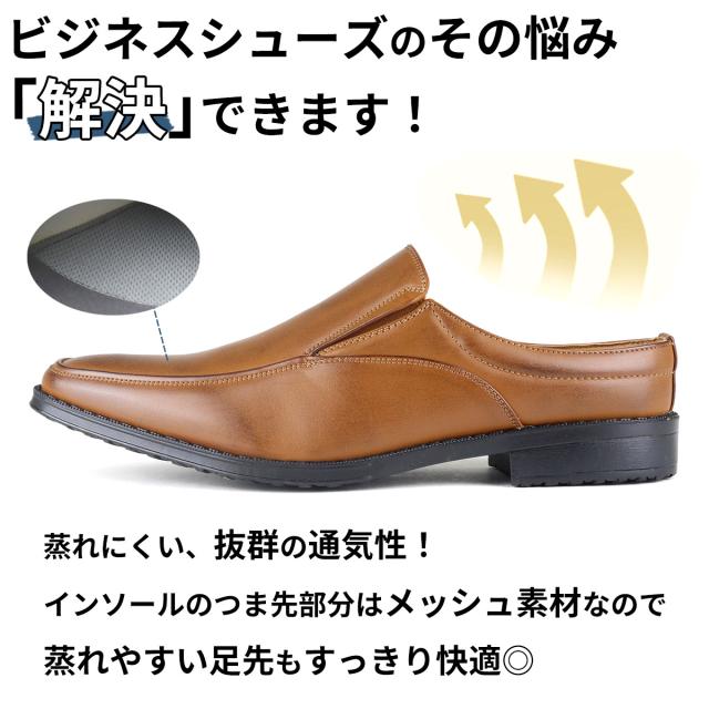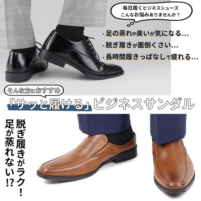 サンダルタイプのビジネスシューズで、スーツと合わせても違和感なくご使用いただけます。