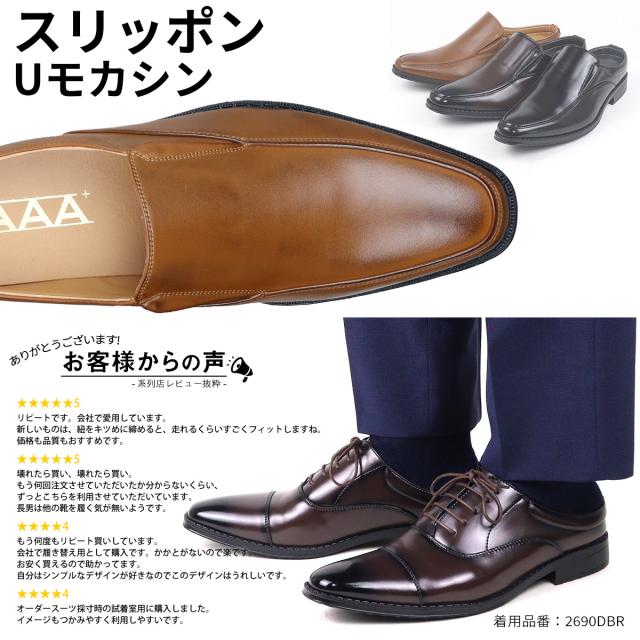サッと履ける ビジネスシューズ メンズ 革靴 ビジネスサンダル スリッポン Uチップ 蒸れにくい 防滑 No.2693 25.0-28.5cm 黒 ブラック AAA+ サンエープラス スリッパ PUレザー ロングノーズ つっかけ かかとなし 3cmヒール 滑りにくい 通勤 仕事 履きやすい 269