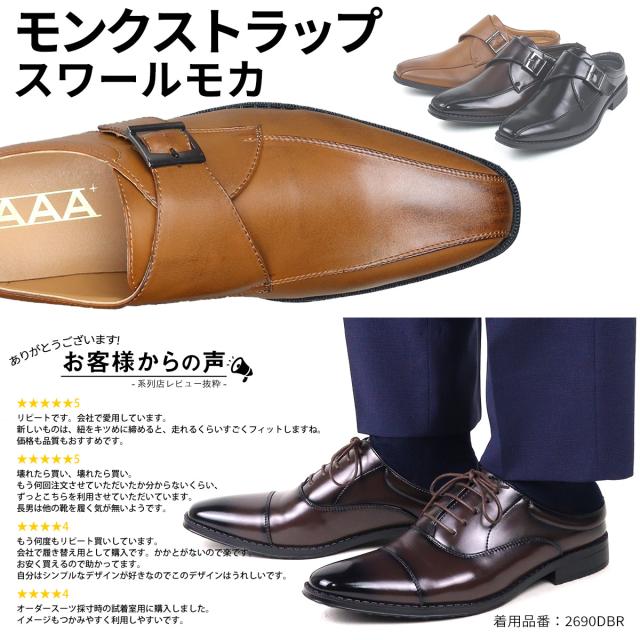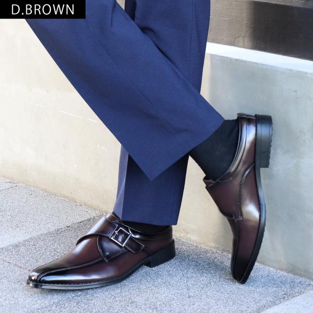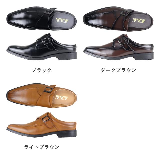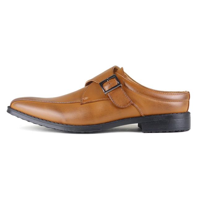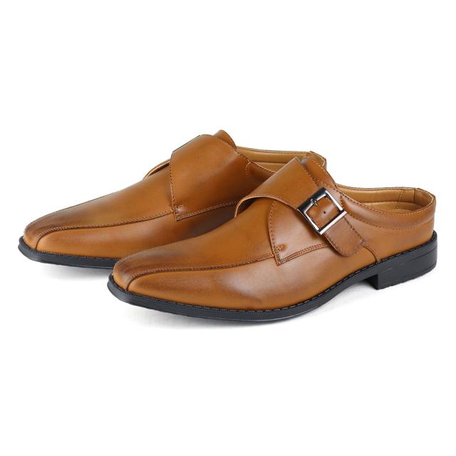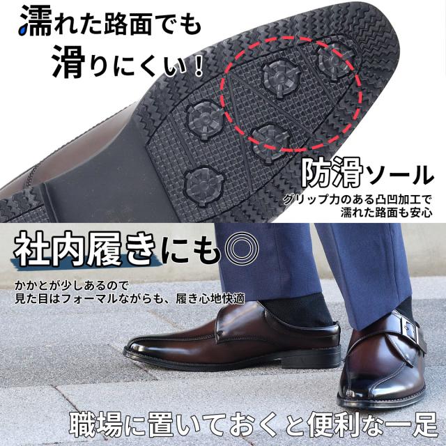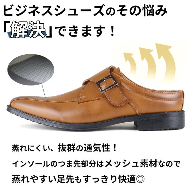 サッと履ける ビジネスシューズ メンズ 革靴 ビジネスサンダル モンクストラップ 蒸れにくい 防滑 No.2694 25.0-28.5cm スリッパ 3cmヒール 通気性 紳士靴 ロングノーズ スワールモカ 黒 ブラック AAA+ サンエープラス 滑りにくい 通勤 会社 社内履き フォーマル 269
