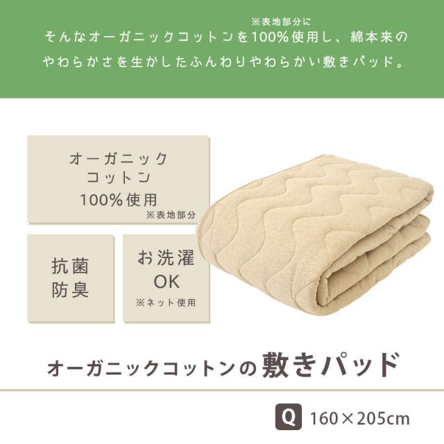 敷きパッド オーガニックコットン クイーン 約160×205cm 表地 綿100% 敷きパット 敷パッド オーガニック 無地 シンプル 綿【haru】