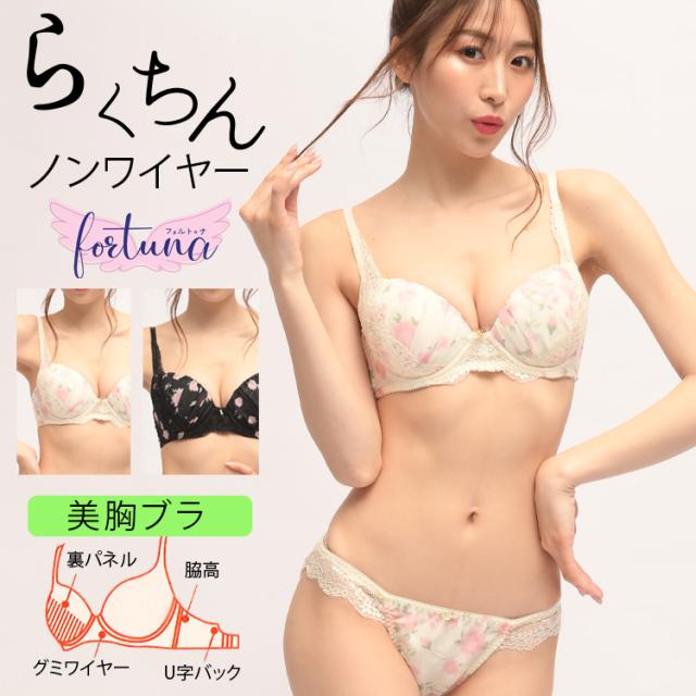 【送料無料】ふんわり花柄 セット かわいい ノンワイヤー ブラジャー ブラ ブラ ブラセット ナイトブラ Aカップ AAカップ 小胸 黒 アイボリー 下着 可愛い レディース インナー 楽 女性 ランジェリー セクシー