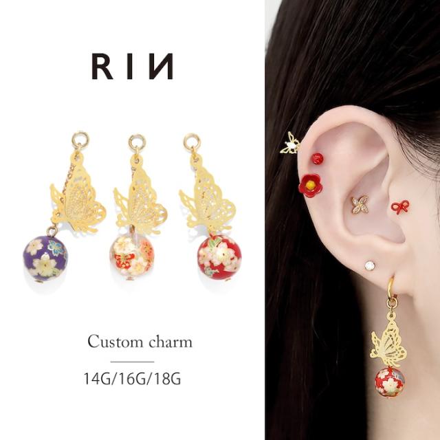 チャーム 14G 16G 18G ボディピアス 毬 鞠 蝶 蝶々 バタフライ チェーン 和 和風 アレンジ パーツ カスタマイズ ピアス 金属 アクセサリー 凛 りん ピアスパーツ 片耳用 通販