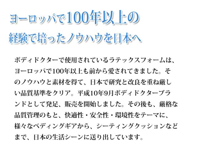 | その他 | 日本製 ※側地付きの状態でも、天日干しはお避け下さい ※ラテックスフォームアレルギーのある方は、購入をお控えください ※発酵密度にバラつきがあり、出来上がった製品に多少誤差が表れ、硬さにも多少誤差が生まれる可能性があります。予めご了承ください。 |