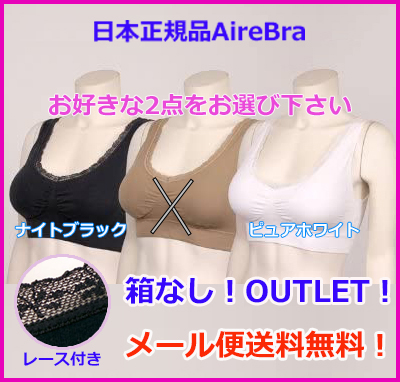 【メール便送料無料】【在庫処分価格】【2点】アウトレット 普段使いに、ナイトブラにも!ストラップ・ホック・ワイヤーなし。スリムリフト エアブラ (箱なし)
