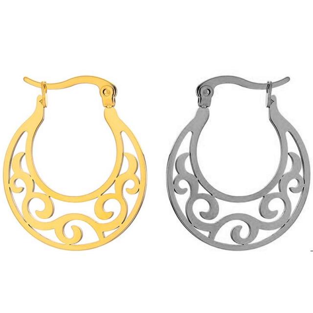 三日月型のフレームに唐草のパルメットをデザインしたかっこいいステンレスピアス。