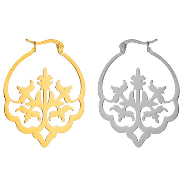 菩提樹をモチーフにしたトライバルをデザインしたかっこいいステンレスピアス。
