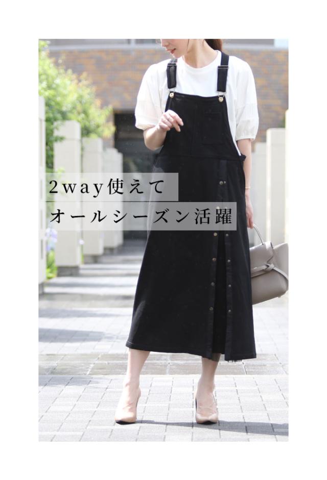 冬新作 大人女性が似合う2wayサロペットスカート レディース ファッション ワンピース サロペット スカート 黒 ブラック 夏服 大人可愛い 40代 レディースファッション 50代女性 ファッション 60代 ミセスファッション サワアラモード sawa a la mode otona aljp350
