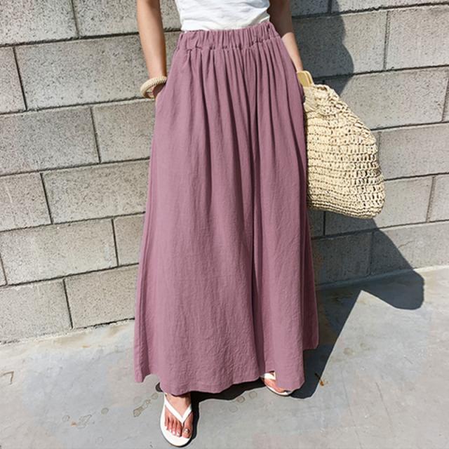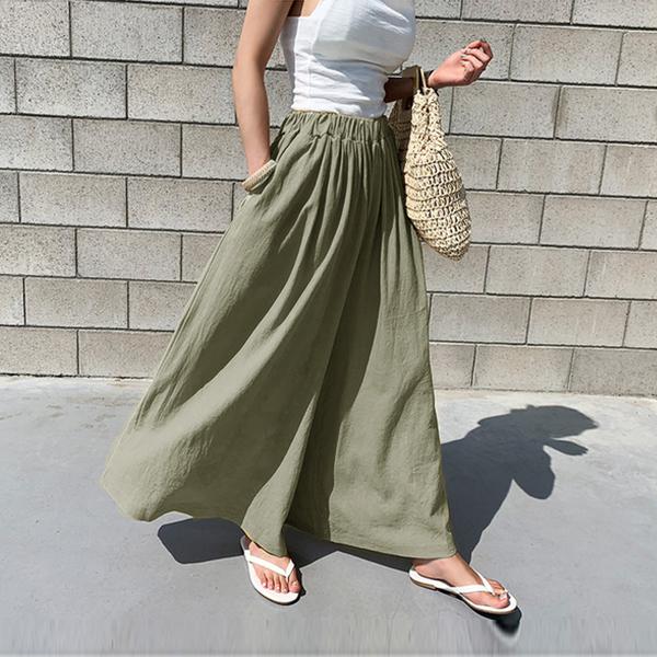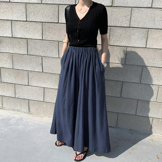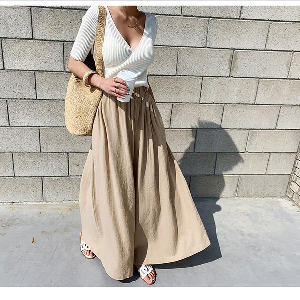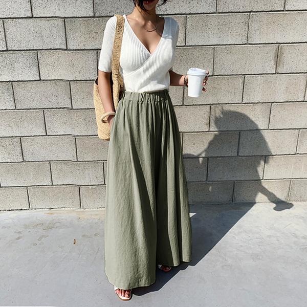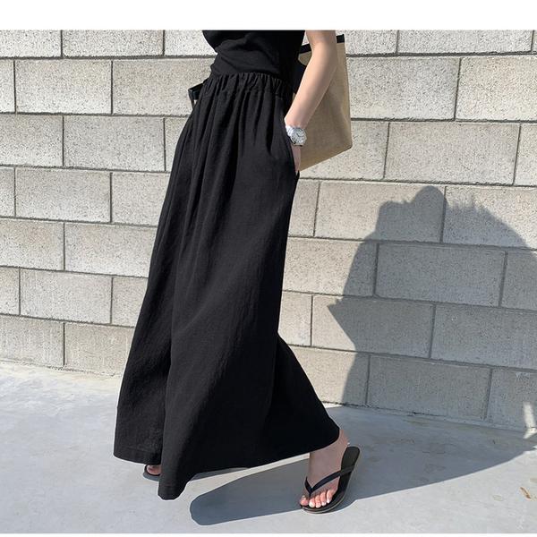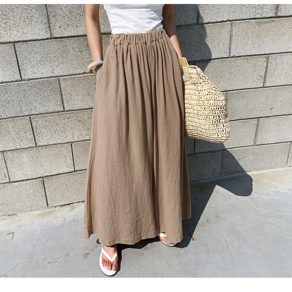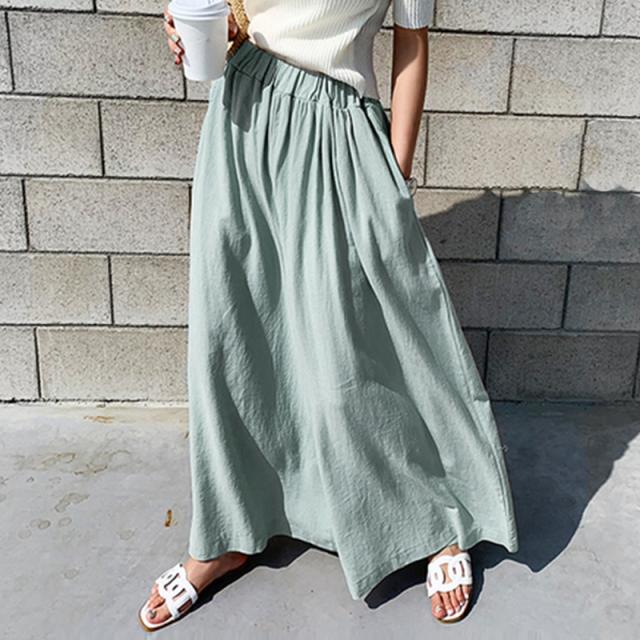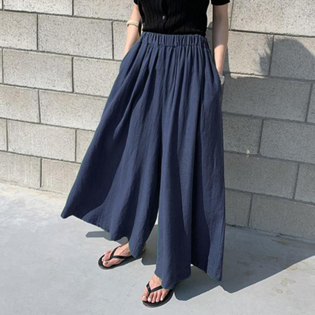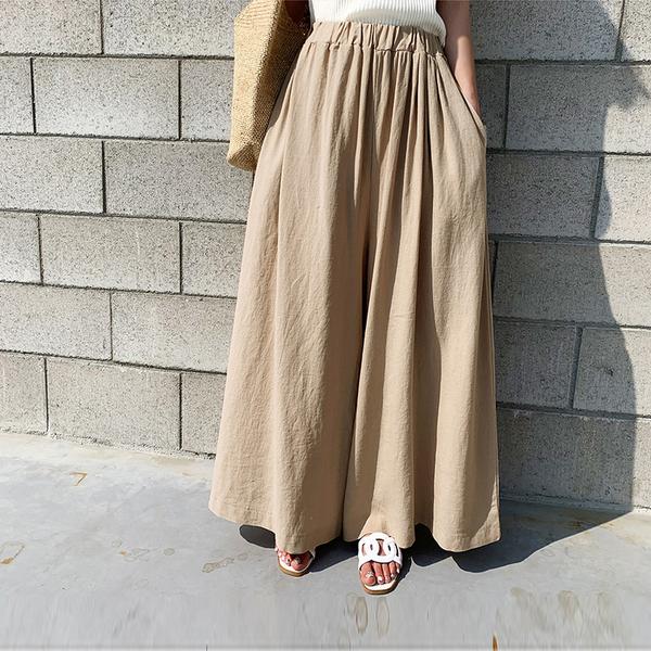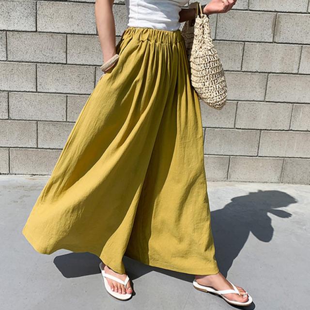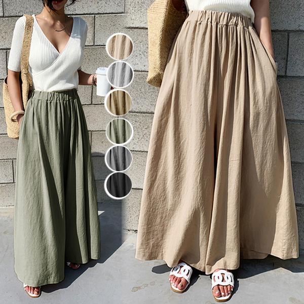 コットン100%フレアワイドパンツ リネンタッチ リネン風 綿麻風 レディース ボトムス ズボン ウエストゴム ゆったり カジュアル 大きいサイズ スカーチョ 涼しい ルームウェア 通勤 通学 おしゃれ 着回し 春夏 レディース 送料無料 SLENDER スレンダ u736