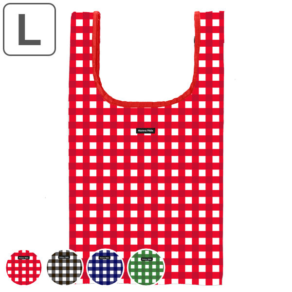 エコバッグ L ギンガム Hanna Hula ハンナフラ 撥水 洗濯可 ( マイバッグ エコバック マイバック マチ広 折りたたみ コンパクト 洗える レジ袋 コンビニ バッグ レジバッグ サブバッグ 買い物バッグ 大容量 軽量 )