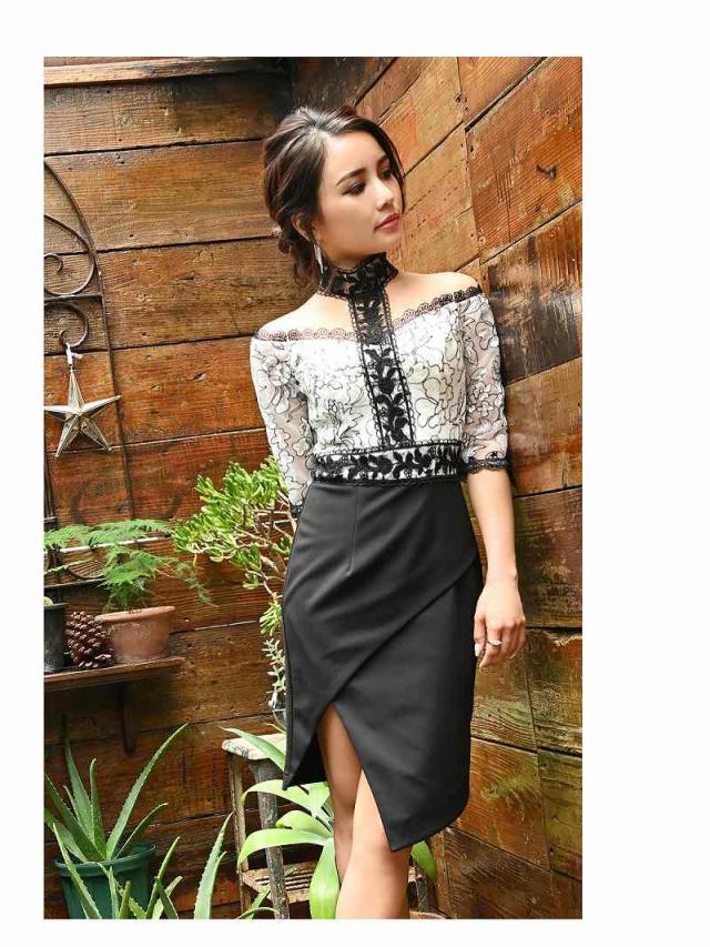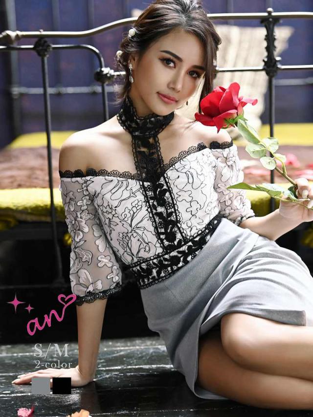 キャバドレス キャバ ドレス キャバクラ anドレス アン ミニドレス パーティードレス チョーカー風 オフショルダー レース