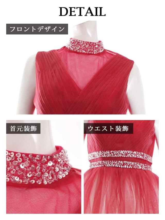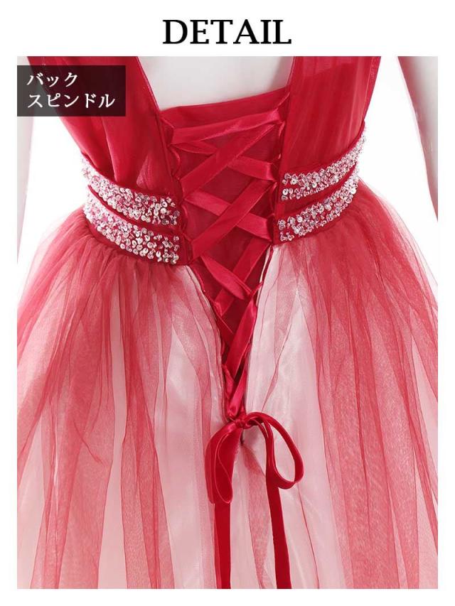 ☆ネックとウエストに施されたスパンコールがキラキラ輝き華やかに魅せてくれるのでバースデーイベントや、ウェディングの二次会用ドレスにも使えるロングドレス♪