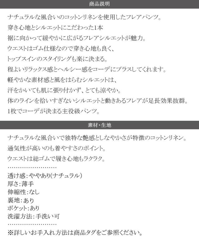 ![]() ![]() ![]() ![]() ![]() ![]() ![]() ![]() ![]() ![]() ![]() ![]() ![]() ![]() ![]() ![]() ![]() ![]() ![]() ![]() ★さらっと軽やか。コットンリネンフレアパンツ★ リネン混で大人のリラックスムード。 ゆったり&楽ちんフレアパンツ。 ナチュラルな風合いのコットンリネンを使用したフレアパンツ。 穿き心地とシルエットにこだわった1本 裾に向かって緩やかに広がるフレアシルエットが魅力。 ウエストはゴム仕様なので穿き心地も良く、トップスインのスタイリングも楽に決まる。 程よいリラックス感とヘルシー感をコーデにプラスしてくれます。 軽やかな素材感と風をはらむシルエットは、汗をかいても肌に張り付かず、とても涼やか。 体のラインを拾いすぎないシルエットと動きあるフレアが足長効果抜群。 1枚でコーデが決まる主役級パンツ。 セットアップ用、同素材開襟シャツも入荷予定。 開襟シャツとのセットアップコーデで一気にトレンド感! ビッグシルエットのシャツ、Tシャツをタックインして今季のトレンドコーデに♪ レビュー商品の評価: