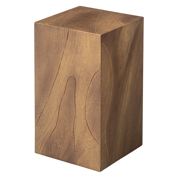 木目の流れに沿って溝が入っています。お部屋や玄関などのに置いておくだけでおしゃれな雰囲気に早変わりです。形もシンプルなためスツールとしてはもちろんですが、インテリアのひとつとして使うこともできます。上に花瓶を置いたり絵画を立てかけておく台としてもお使いいただけます。