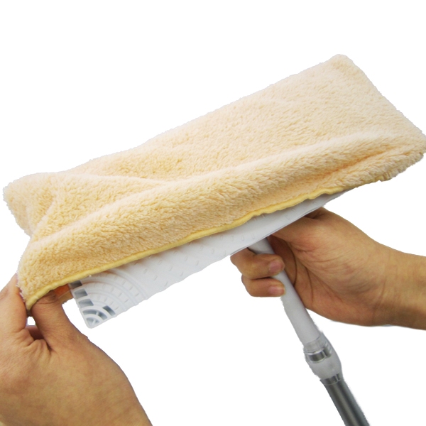 雑巾の口にゴムが縫い込まれているので取り付け、取り外しが簡単です。また、洗濯機で丸洗いして頂けるので、何度でも繰り返し使用して頂く事ができます。