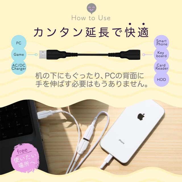 AC DC データ転送 延長ケーブル 最大3A 1年保証