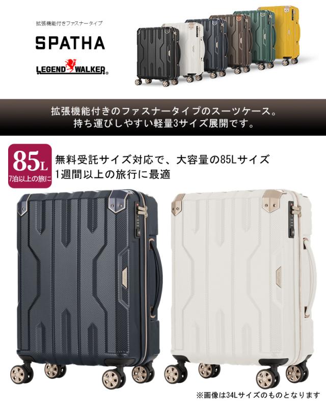 1週間以上の旅に 送料無料 ティーアンドエス(T&S) SPATHA 拡張機能付き スーツケース ファスナータイプ 85L 5109-69 ジッパキャリー TSAロック ダブルキャスター 軽量 コーナーパッド 無料受託サイズ対応