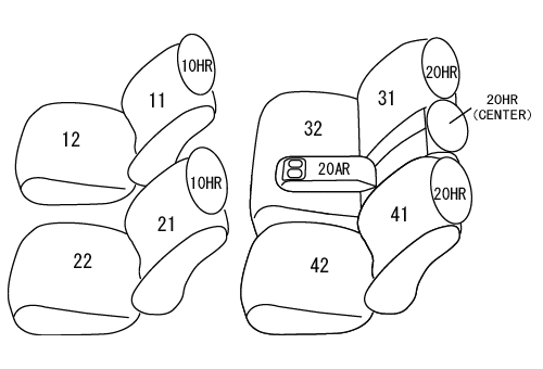 ヘッドレスト総数:5 1列目肘掛:0 2列目肘掛:1 3列目肘掛:- サイドエアバッグ:〇