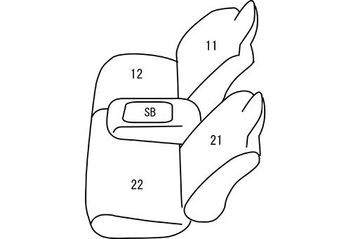 1列目:座面形状が4:6分割、ヘッドレスト一体型、センターシート有り