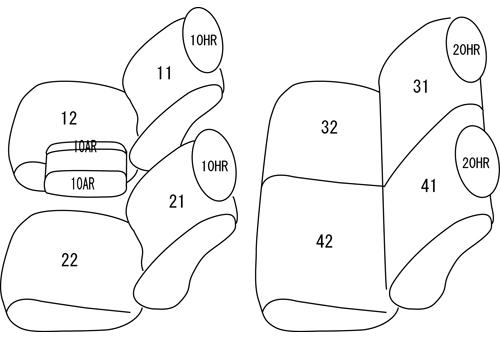1列目:セパレート、ヘッドレスト有り、センターシート無し