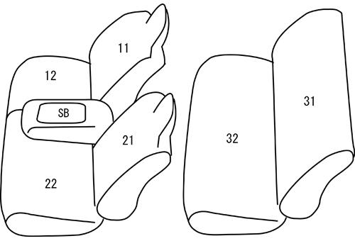 1列目:座面形状が4:6分割、ヘッドレスト一体型、センターシート有り
