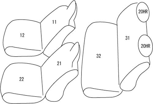 ヘッドレスト総数:2 1列目肘掛:0 2列目肘掛:0 3列目肘掛:- サイドエアバッグ:設定無し