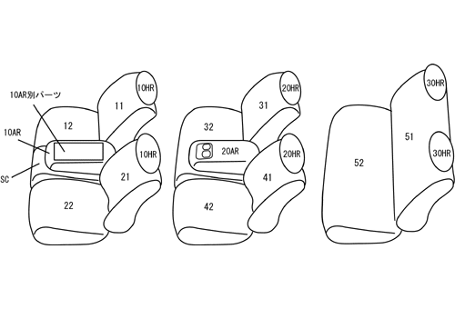 2列目6:4分割、3列目背もたれ座面一体型