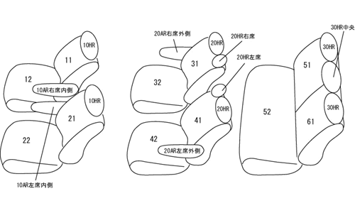 ヘッドレスト総数:9 1列目肘掛:2 2列目肘掛:2 3列目肘掛:0 サイドエアバッグ:×