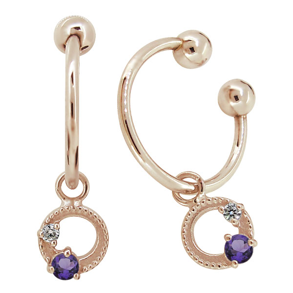 イヤリング フープイヤリング アメジスト イヤーカフ レディース シンプル 月 星 ピンク イエロー 10k 母の日