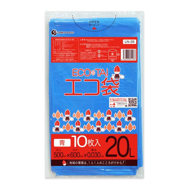 【バラ販売】LN-26bara ポリ袋 20リットル0.030mm厚 青 10枚 / ゴミ袋 ごみ袋