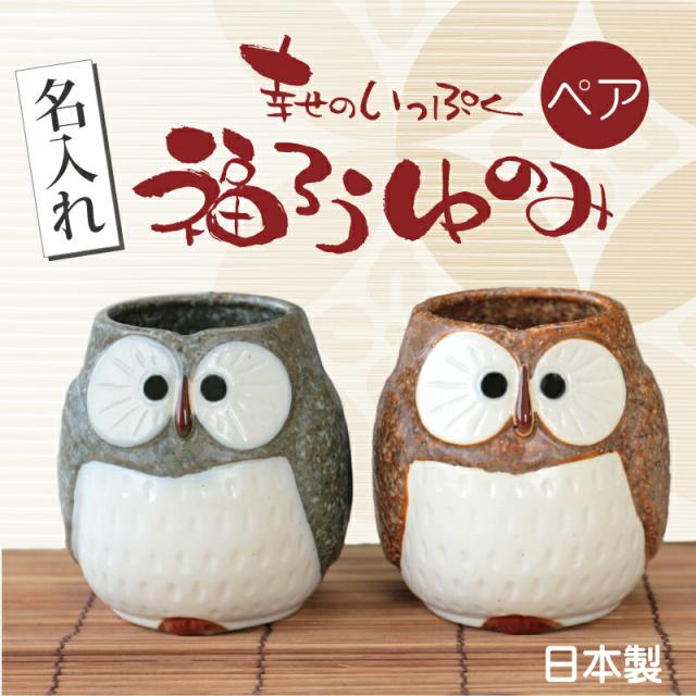 敬老の日 プレゼント 湯呑み かわいい ふくろう 陶器 ペア 幸せのいっぷく 福ろう湯のみ・ペア 翌々営業日出荷 縁起の良い 和風 祖父母 フクロウ ギフト 日本製 桐箱 焼き物 セット かわいい 面白い 夫婦 結婚祝い 名入れ ギフト 父の日_kz