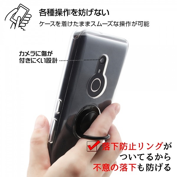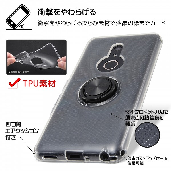 | 商品の説明 | 360°回転リング × 衝撃吸収性のあるTPU素材。 指に掛けて使えるリングで不意の落下を防ぐ。 リングはスタンドとしても使用可能。 四つ角エアクッション付き。 端末のストラップホール使用可能。 |