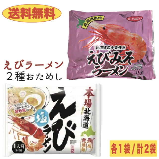 【送料無料】2種のえびラーメン食べ比べセット 2袋 えび塩味&えびみそ味