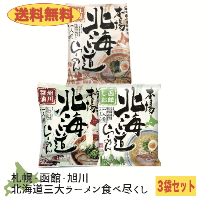 本場北海道 札幌味噌&函館しお&旭川醤油 3袋セット 北海道ラーメン みそ 塩 しょうゆ【送料無料】