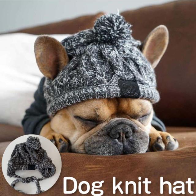 【300円クーポン付き】フレンチブルドッグ 犬 帽子 ニット帽 冬 秋 グレー ペット帽子 小型犬 中型犬 大型犬 KM579G