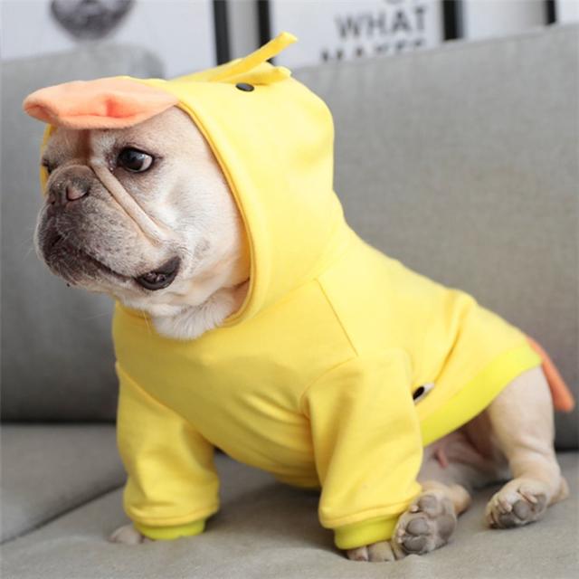 フレンチブルドッグ フレブル ペット 服 かわいい おしゃれ 秋 冬 アヒル 犬 服 猫服 犬 ドッグウェア フード付き ペット服 イエロー コスチューム アヒルコート 変身服 出掛け コスプレ服 ハロウィン おしゃれ KM172JK