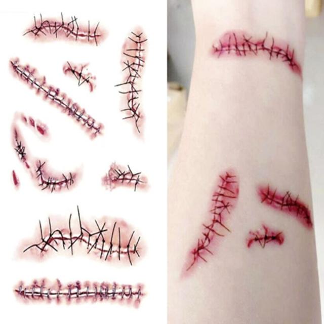 ハロウィン 傷シール 特殊メイク 傷メイク キズシール ゾンビメイク タトゥーシール 傷 傷口 グッズ 血糊 血のり メイク ゾンビメイク ゾンビ 囚人 コスプレ 仮装 特殊メイク 雑貨 ホラー リアル 本格的 誕生日 飾り付け