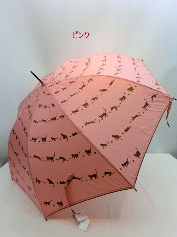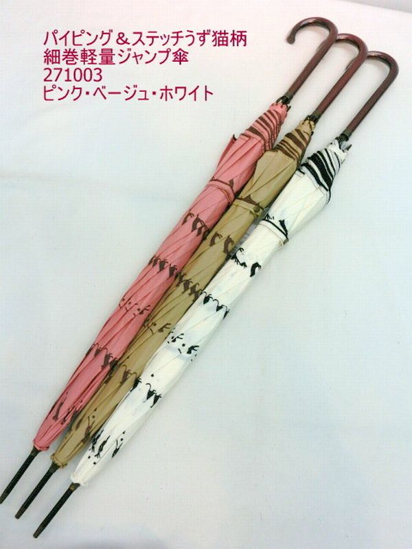 雨傘 傘 ファッション小物 レディースファッション 長傘 婦人 パイピング ステッチ うず 猫柄 細巻 軽量 ジャンプ傘 オシャレ ジャンプ 【送料無料】