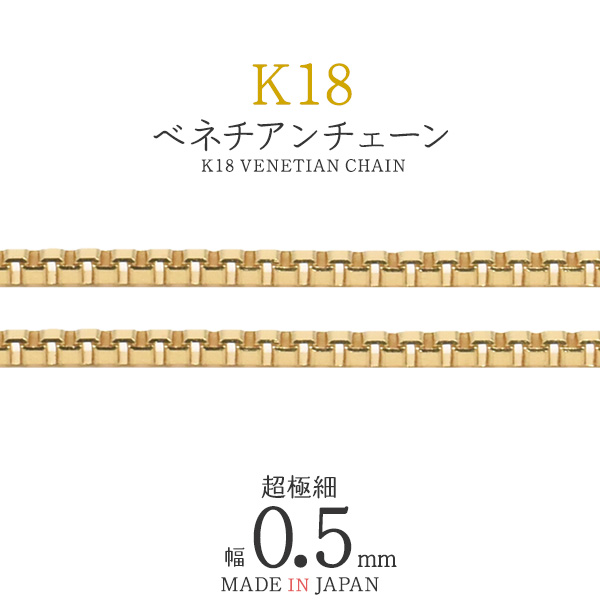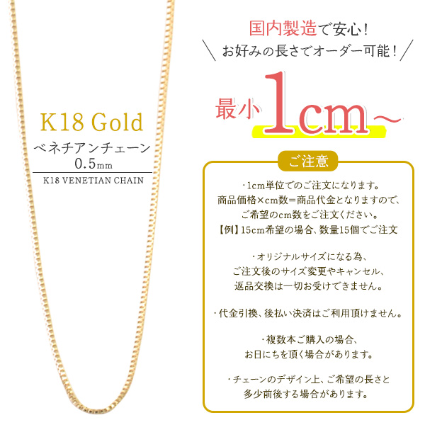 K18 ベネチアンチェーン 最小1cmからオーダー可能 日本製 幅0.5mm チェーン 金18 アクセサリーパーツ 素材 手作りアクセサリーパーツ k18 アクセ パーツ ネックレスチェーン 18k アクセサリー 手芸 ペンダント ピアス ブレスレット アンクレット ブローチ 飾り 装飾