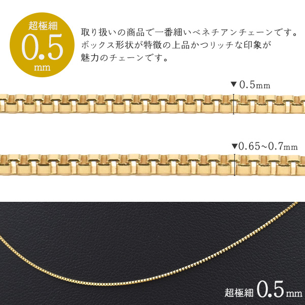18金で仕上げた国内製造の日本製・ベネチアンチェーン。