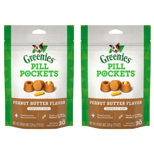 グリニーズ ピルポケット 犬用 投薬補助 カプセルサイズ ラージ ピーナッツバター味 2個セット 224g/個 約30個×2個 ドッグフード 犬 薬 飲ませる 包む おやつ Greenies