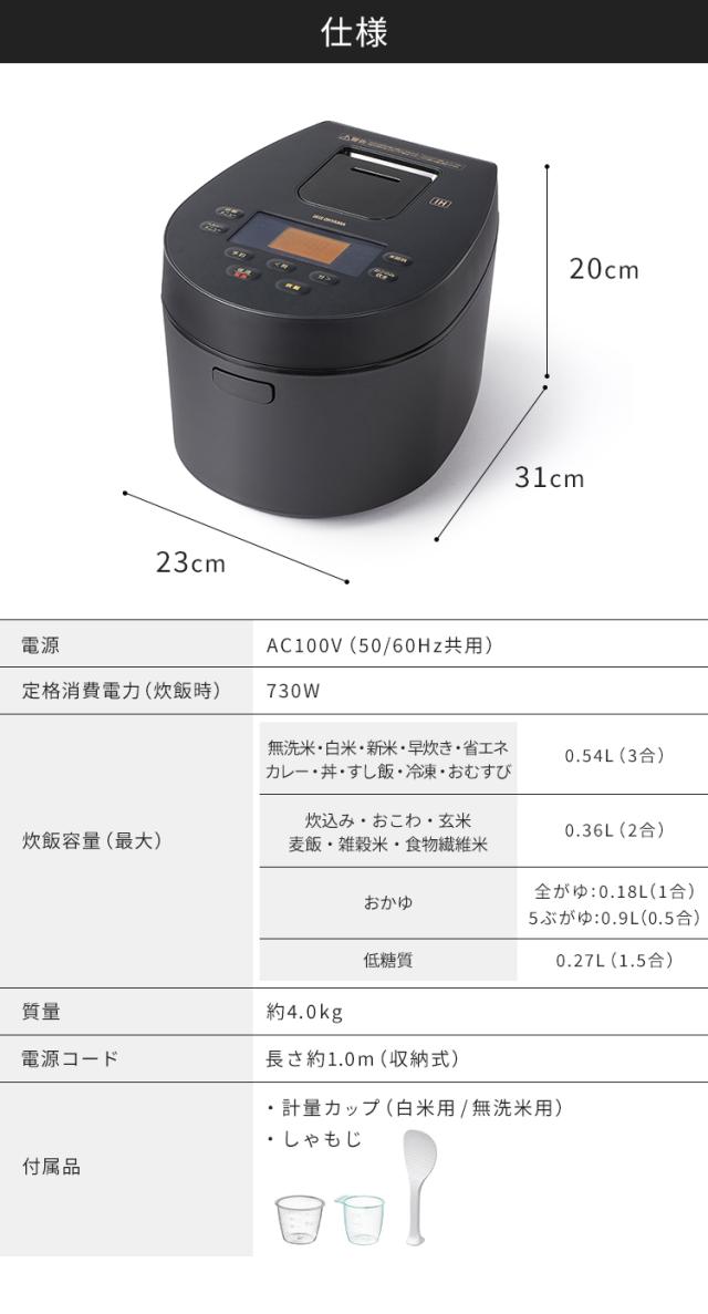 ★レビュー投稿でポイント還元★ 炊飯器 3合 IHジャー炊飯器 3合 RC-IL30 ブラック 炊飯器 炊飯ジャー 炊飯 ジャー IH ih 3合 銘柄炊き 炊き分け 洗える 低温調理 保温 タイマー アイリスオーヤマ