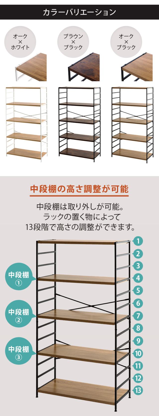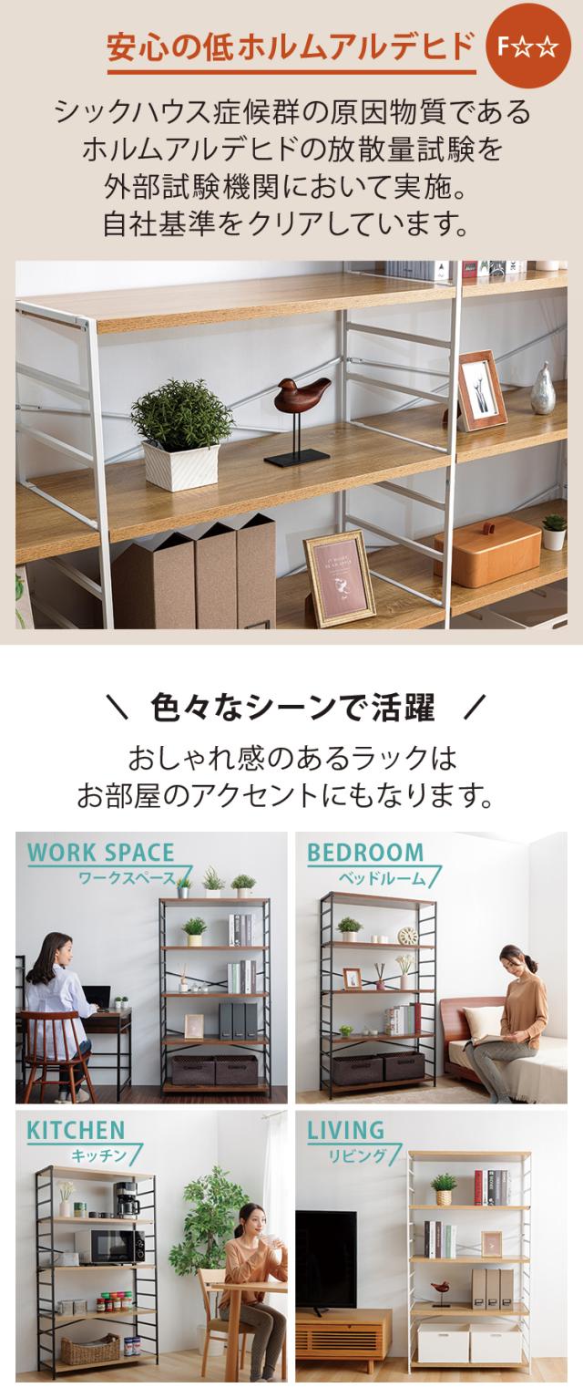丈夫なスチールフレームに木製棚板のあたたかさをプラス、どんなテイストのお部屋にも合わせやすい5段ラックです。