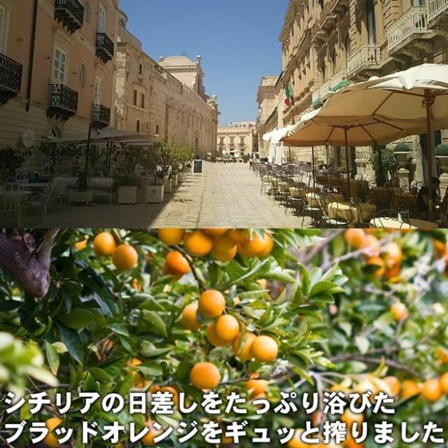 世界中でイタリアのシチリア島東部でしか育たないという、真っ赤な果肉のオレンジ「タロッコ種」を中心に抽出。