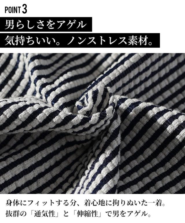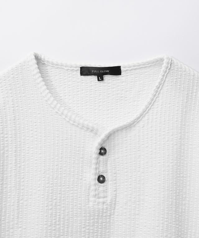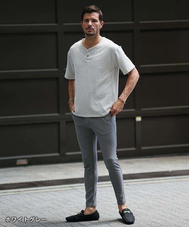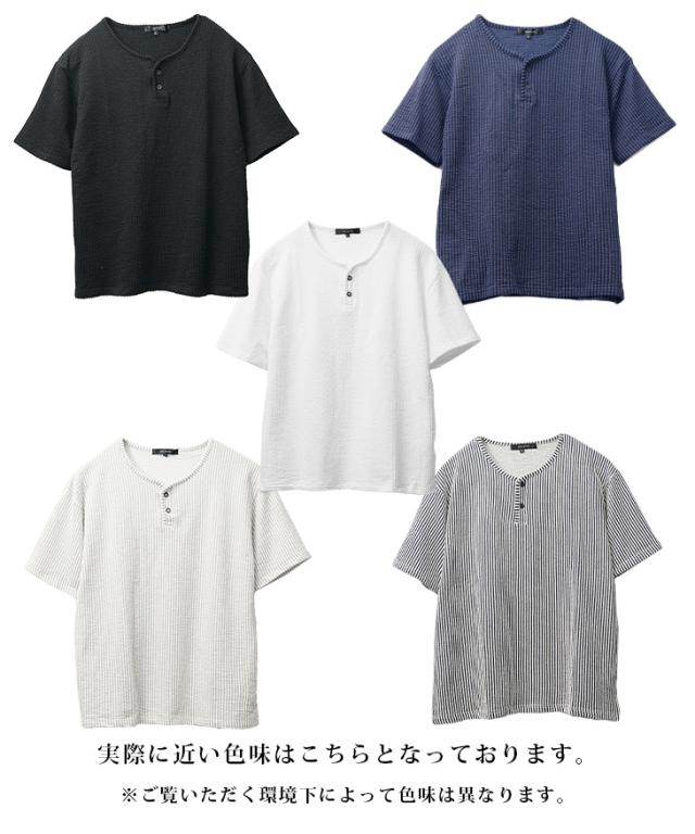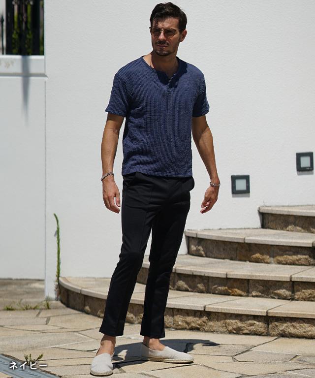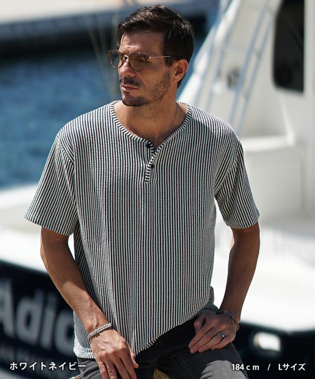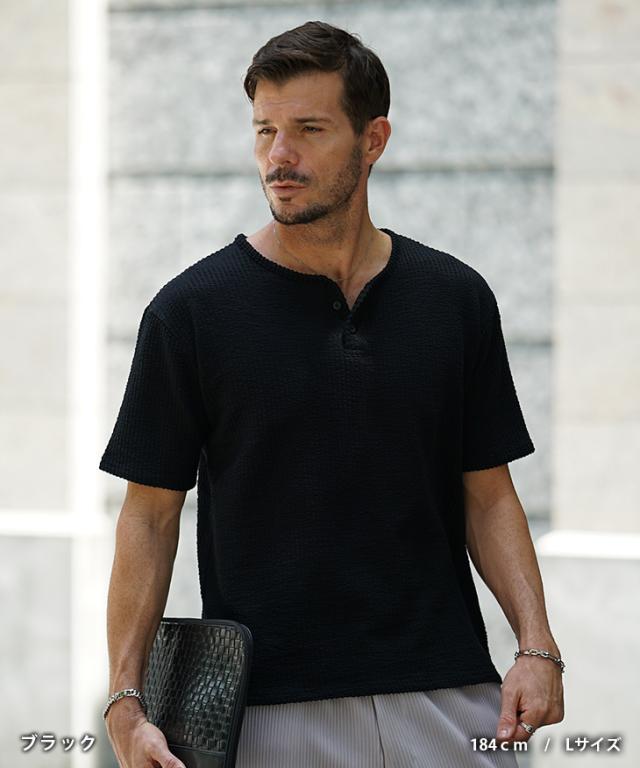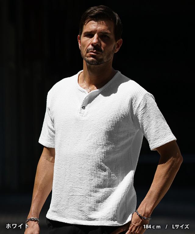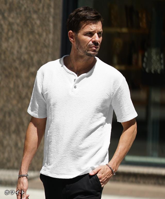 『シアサッカーヘンリーネックTシャツ』大人の余裕と爽やかさを生み出すTシャツが登場。【モテる男は、いつも余裕】モテる男はいつだってどこか余裕を持っている。そして、それは服装にも現れる。ゆとりのあるサイズ感を採用したTシャツは、リッチな大人のOFFを感じる余裕を演出。また、首元はボタン付きのヘンリーネックで胸元に色気をプラス。生地はサ、凹凸感のあるサッカー織の生地を採用することで、肌との接地面を減らし快適で爽快な、着心地からも余裕を。見た目、そして中身から大人の余裕を。※こちらのページは、Tシャツのみの販売ページです。【おすすめコーデ】別売りのハーフパンツと合わせたセットアップでの着用がおすすめですが、デニムと合わせるなど単品でもお楽しみいただけます。