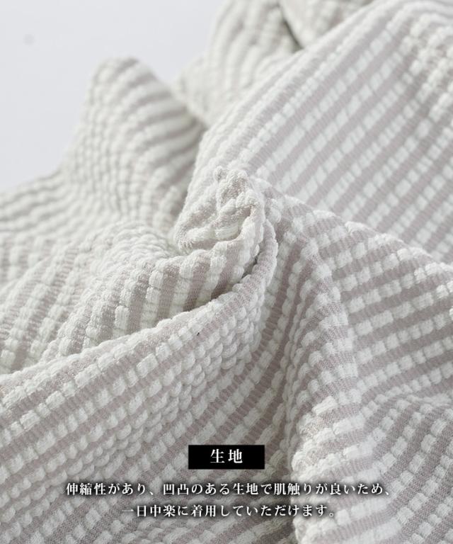 ゆったりとしたサイズ感でした。リゾート感あふれるシアサッカー素材が、夏にピッタリでした。通気性も良く、生地も良く伸びるため、楽に着用することができました。